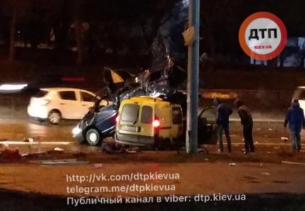 Увечері 19 березня в Києві на проспекті Перемоги, недалеко від станції метро "Берестейська" сталося жахливе ДТП, в якому одну з машин буквально розірвало на частини силою удару.