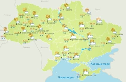 За прогнозом синоптиків, у понеділок, 21 жовтня, на всій території України продовжить гуляти "бабине літо". Вдень повітря буде прогріватися до + 24°С, а вночі стовпчики термометра не будуть опускатися нижче +7...+10°С.
