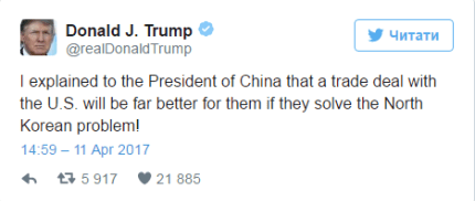 "Я пояснив президенту Китаю, що торговельна угода з США буде набагато кращою для них, якщо вони вирішать північнокорейську проблему", - написав він.