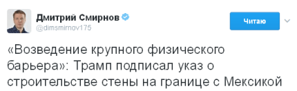 "Зведення великого фізичного бар'єру": Трамп підписав указ про будівництво стіни на кордоні з Мексикою", — написав він.