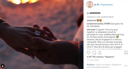 На сторінці Лопес і Родрігса з'явилися однакові фото рук знаменитостей, на якому видно кільце з великим прямокутним діамантом на безіменному пальці у Джей Ло. Дженніфер прокоментувала свій знімок декількома смайлами в формі сердець, а Алекс зворушливо підписав: "Вона сказала так".