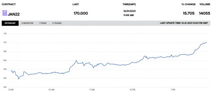 Станом на 13:50 за Києвом котирування ф'ючерсів сягнули 2022,85 долара за тисячу кубів, й продовжили свій ріст. Варто зазначити, що торги стартувалт зі зростання цін на січневі контракти на 4,2% до 153,15 євро за МВт-год, тобто 1824,29 долара за тисячу кубометрів.
