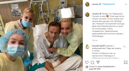 "Олексій, з поверненням! Раді вас бачити і читати. Нічого особливого ви не пропустили; Стільки пережив, а так чудово виглядає - я вражена!; головне, що поряд родина - ми за вас!; Найкраще, що сталося за сьогодні! Бережіть себе!; Олексій! Впізнаємо ваш тонкий гумор, самоіронію. Значить, все в порядку! Дуже-дуже раді вас бачити! І читати!!! З поверненням!; ти переміг смерть і Кремль - просто шок! Боєць! Молодчина!; І цю війну Путін програв", - коментують допис Навального в мережі.
