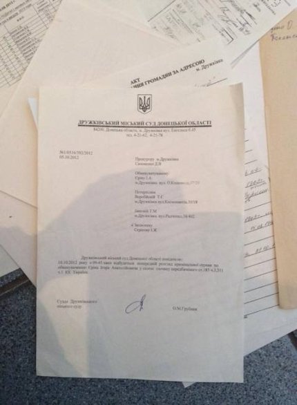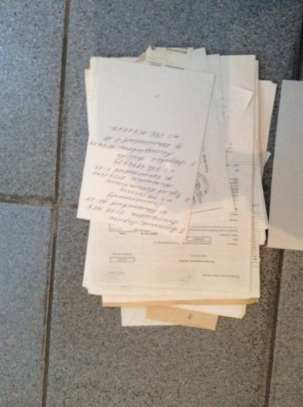 "У туалеті немає туалетного паперу, але судячи з усього працівників суду це не сильно турбує. Замість туалетного паперу в відрі з папером - копії паспортів та ІПН, свідоцтва про реєстрацію, реєстраційні документи Дружківського міського управління юстиції, ухвали суду з мокрими печатками, кореспонденція, рахунки і багато інших документів. Сьогодні в суді проходить процес, який називають "мер-сепаратист проти активістки Ірини Кирикової", і комусь із відвідувачів захотілося в туалет. Від такої знахідки в шоці всі присутні", - пояснив користувач.