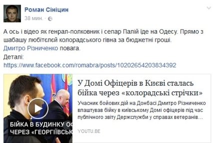 У відповідь Різниченко вдарив Палія, якого раніше звинувачували у зв'язках з московськими кураторами сепаратистських рухів в Україні.