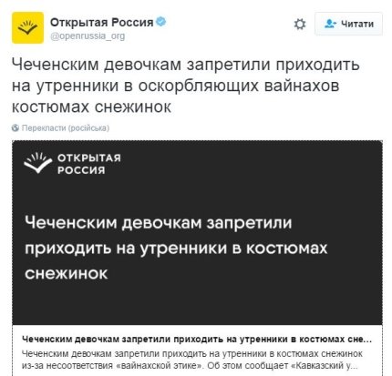 Відзначимо, що таке рішення чеченського відомства викликало бурю емоцій в мережі. Так користувач Twitter Андрій написав: "Як говорив Невзоров: традиції - це милиця, за допомогою якої до нас в сучасність проникають всілякі маразми минулого".
