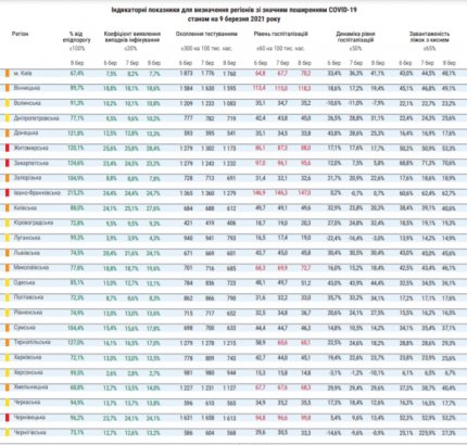 За даними Міністерства охорони здоров'я, 9 березня в помаранчевій зоні знаходяться - місто Київ, Вінницька, Донецька, Запорізька, Київська, Львівська, Миколаївська, Сумська, Тернопільська і Хмельницька області. Саме ці області ризикують опинитися в червоній зоні, якщо ситуація з поширенням ковіда не покращиться.
