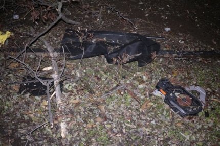 Патрульні, які переслідували втікачів, приблизно через 1-1,5 кілометра після початку гонитви виявили білий Mercedes, який врізався в електроопору. Поруч з машиною лежали двоє непритомних чоловіків.