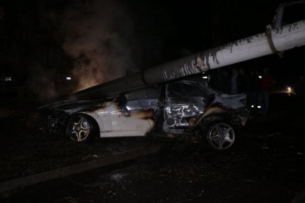 Між тим, автомобіль втікачів загорівся і повністю вигорів — марку машини можна було дізнатися тільки розлетівся по запчастинах.