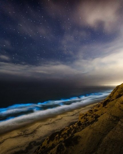 Вражаючу природну біоіллюмінацію американці помітили на великій території. Вони відзначають, що природний феномен можна побачити на 40-км ділянці прибережної смуги океану.