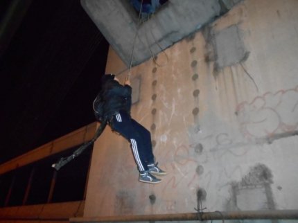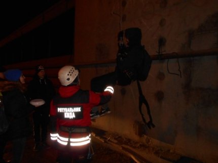 Рятувальникам довелося за допомогою висотного спорядження спускати на землю компанію екстремалів, які пробралися на пілон Південного моста в Києві.