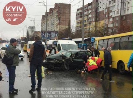 На Троєщині в Києві легковий автомобіль зіткнувся з маршруткою, в результаті чого одна людина постраждала.