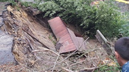 На фото, опублікованому прес-службою, видно, що через зсув зруйнувалася стара будівля гаража та впали дерева.