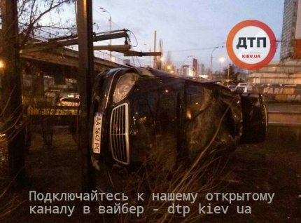У районі Дружби народів в Києві водій Mercedes-Benz не впорався з керуванням, через що вилетів з проїжджої частини, врізався в стовп і перекинувся набік. В результаті аварії ніхто не постраждав.