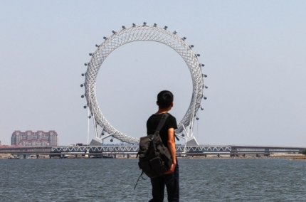 У Китаї створили найбільше в світі оглядове колесо Bailang River Bridge Ferris Wheel, висотою 145 метрів, при зведенні якого обійшлися без звичних для подібних об'єктів спиць.