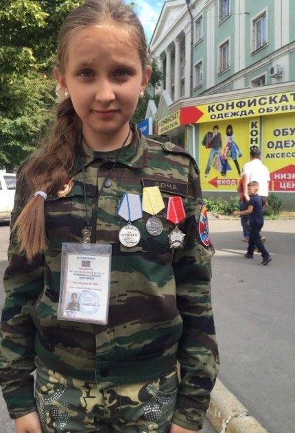 Відзначимо, що дівчинка формально є членом алчевського угруповання бойовиків «Привид» і стала відома як автор віршів, присвячених ЛНР-ДНР.