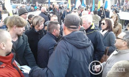 7 березня в центрі Маріуполя під час мітингу проти блокади Донбасу між активістами відбулася словесна перепалка.