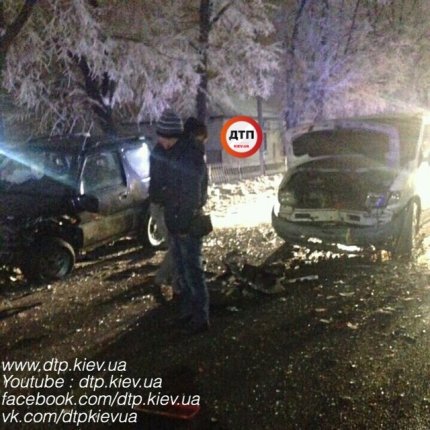 "Автомобіль з волонтерами АТО, що перевозив гуманітарну допомогу і позашляховик на причепі, рухався по вул. Київський Шлях. Раптово в причіп влітає автомобіль ВАЗ. Після удару ВАЗ викидає на смугу зустрічного руху, де він вдаряє Suzukı Vıtara і Mercedes Vito", - йдеться в повідомленні.