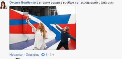 Користувач Оксана Волбенко навела приклад однієї з локацій кліпу і зазначила, що в іншому ракурсі нічого спільного з російським прапором немає.