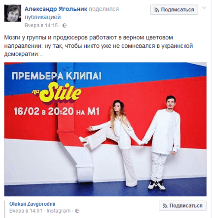 Також російську символіку побачив і український продюсер, композитор, поет і журналіст Олександр Ягольник, про що написав на своїй сторінці в Facebook.