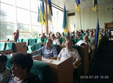 Група активістів блокувала роботу сесії міської ради в Слов'янську.