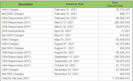 У графіку платежів МВФ зазначено, що у 2022 році Україна повинна виплатити 1,67 млрд SDR, в 2023 році - 1,98 млрд SDR. Загальна сума виплат по боргу на 1 лютого 2036 року має скласти 8,059 млрд SDR.
