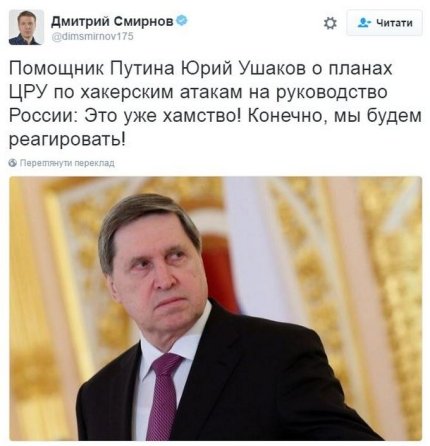На питання про те, чи буде уряд РФ реагувати на загрози США, Ушаков відповів: "Очевидно, будемо, звичайно. Це вже на межі хамства. Тим більше згадуються конкретні діячі з російського керівництва".