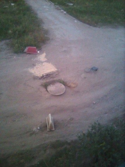 По небезпечній дорозі перестав ходити навіть громадський транспорт. 1,5 місяці тому до і без того поганої дороги додався відкритий люк. Дорожники закрили люк дошками, які через деякий час зламалися від проїжджаючих машин. Оскільки чиновники і дорожня служба дорогу ремонтувати не збиралися, латати ями почали місцеві діти.