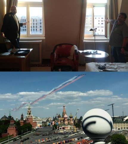 Журналіст поділився кумедною історією своїх колег, до яких перед парадом у Москві прийшов співробітник безпеки готелю, оскільки його вікна виходили на Красну площу.