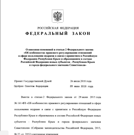 Скріншот закону Росії по надрам окупованого Криму (pravo.gov.ru)