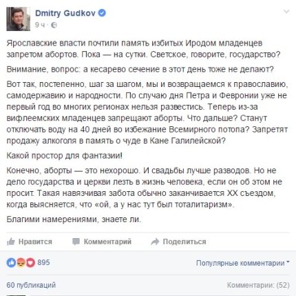 У Ярославській області Росії священики РПЦ в середу оголосили день без абортів, чим обурили користувачів соцмереж.