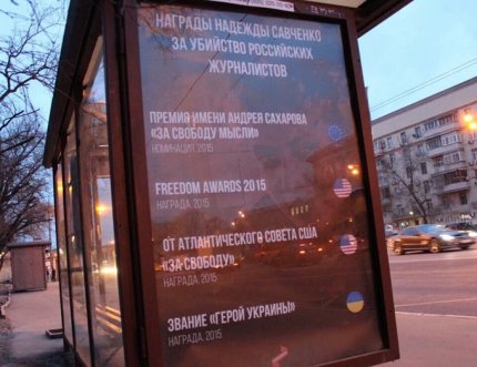 Нижегородський користувач розмістив фотографію білборда, виставленого, очевидно, ще за день до початку офіційного оголошення вироку українці.