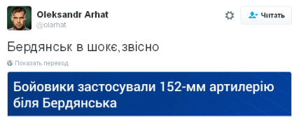 Так, в інформаційній зведенні про події минулого дня, спікер штабу АТО Віктор Шубець обмовився і заявив про обстріл Бердянська з 152-мм гармат.
