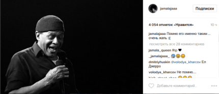 Українські зірки сумують через втрату великого музиканта. Так Джамала висловила співчуття на своїй сторінці в Instagram.