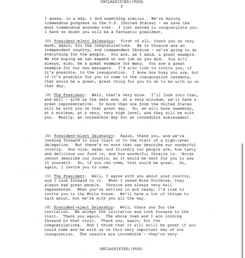 Розмова датована 21 квітня, коли в Україні завершився другий тур президентських виборів. Лідер Сполучених Штатів привітав нового українського колегу з перемогою, назвавши її фантастичною.