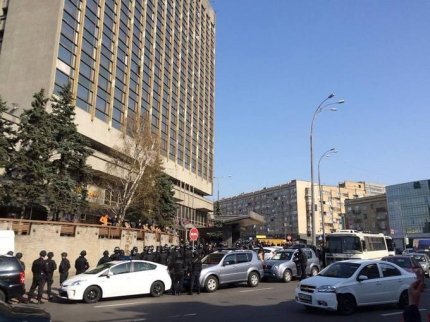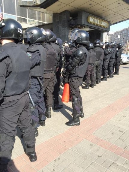 У цей час співробітники МВС закидали людей в камуфляжі димовими шашками. Після чого всіх "неплатників" вивели з готелю.
