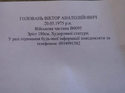 Згідно з його інформацією, дезертира звуть Головань Віктор Анатолійович, він народився 20 травня 1975 року.