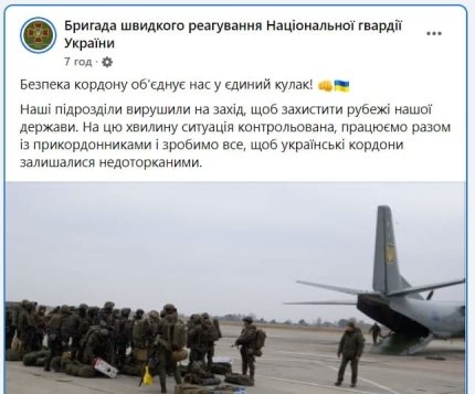 «Наші підрозділи вирушили на захід, щоб захистити рубежі нашої держави. На цю хвилину ситуація контрольована, працюємо разом із прикордонниками і зробимо все, щоб українські кордони залишалися недоторканними», – йдеться в повідомленні Нацгвардії України.