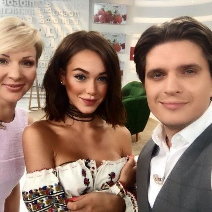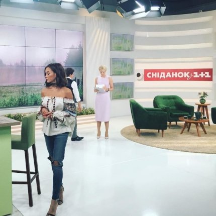 Артистка опублікувала у своєму мікроблозі фото зі зйомок передачі "Сніданок з 1+1" на українському телеканалі.