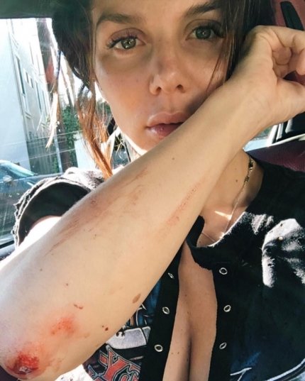 Артистка продемонструвала закривавлену садно на лікті і поділилася подробицями свого падіння.