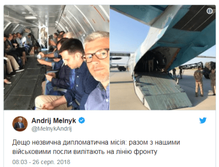 У неділю, 26 серпня, на Донбас вилетіли керівники закордонних дипломатичних відомств України разом з військовими. Вони вирушили на лінію фронту, щоб оцінити ситуацію в зоні проведення ООС.