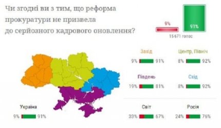 Переважна кількість українців (92%) також вважають, що реформа прокуратури не призвела до серйозного кадрового оновлення.