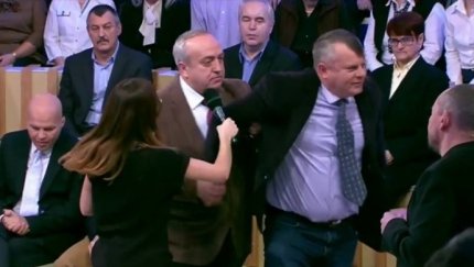 Російські пропагандисти назвали вчинок українця "образою" і вивели із залу.