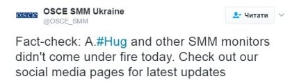 Посилаючись на слова очевидців, блогер заявив, що в числі представників місії був і заступник голови СММ ОБСЄ в Україні Олександр Хуг, і як мінімум один з артилерійських снарядів вибухнув всього в 50 м від нього, а на відстані в 70 м фіксували вибухи снарядів "Град" .