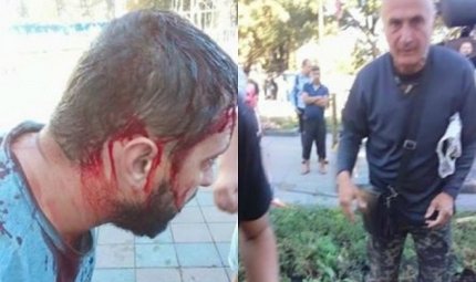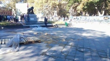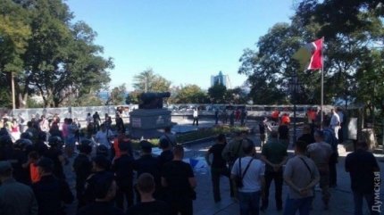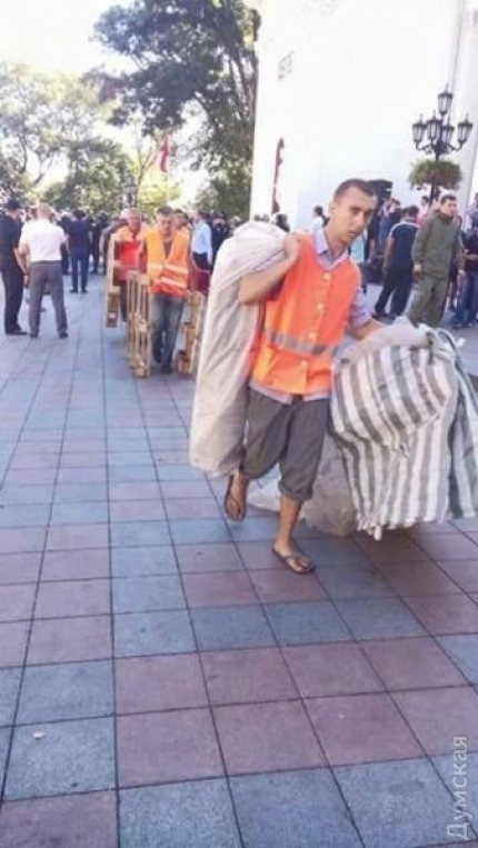 «Це Тарас - ветеран АТО, справжній патріот і одесит, отримав поранення на фронті. Голову йому розбив громадянин Росії Томаз... Думська площа звільняється від сміття для проведення Дня Міста», - написав у Facebook глава організації РДБ Марк Гордієнко.
