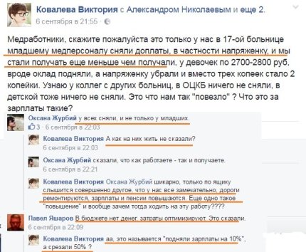 «Медпрацівники, скажіть, це тільки у нас в 17 лікарні молодшому медперсоналу зняли доплату?», - пише в соцмережах донеччанка Вікторія Ковальова. Їй відповідають, що доплати зняли у всіх медиків.