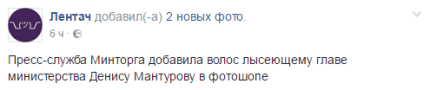 "Прес-служба Мінторгу додала волосся лисіючому главі міністерства Денису Мантурову в фотошопі", - йдеться в повідомленні.