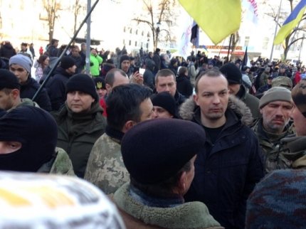 Зі сцени, встановленої біля Стели Незалежності, виступили народні депутати фракції "Самопоміч" Семен Семенченко та Єгор Соболєв, а також позафракційний Володимир Парасюк.