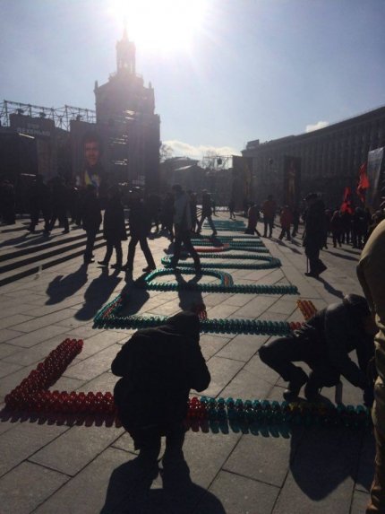У центрі Києва на Майдані Незалежності зібралося Віче на підтримку блокади торгівлі з окупованими районами Донбасу, котре було організовано Організацією українських націоналістів і бійцями добровольчих батальйонів.