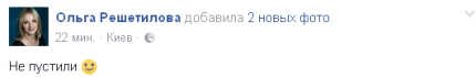 Пізніше Решетилова повідомила, що учасників акції до Адміністрації президента не пропустили.